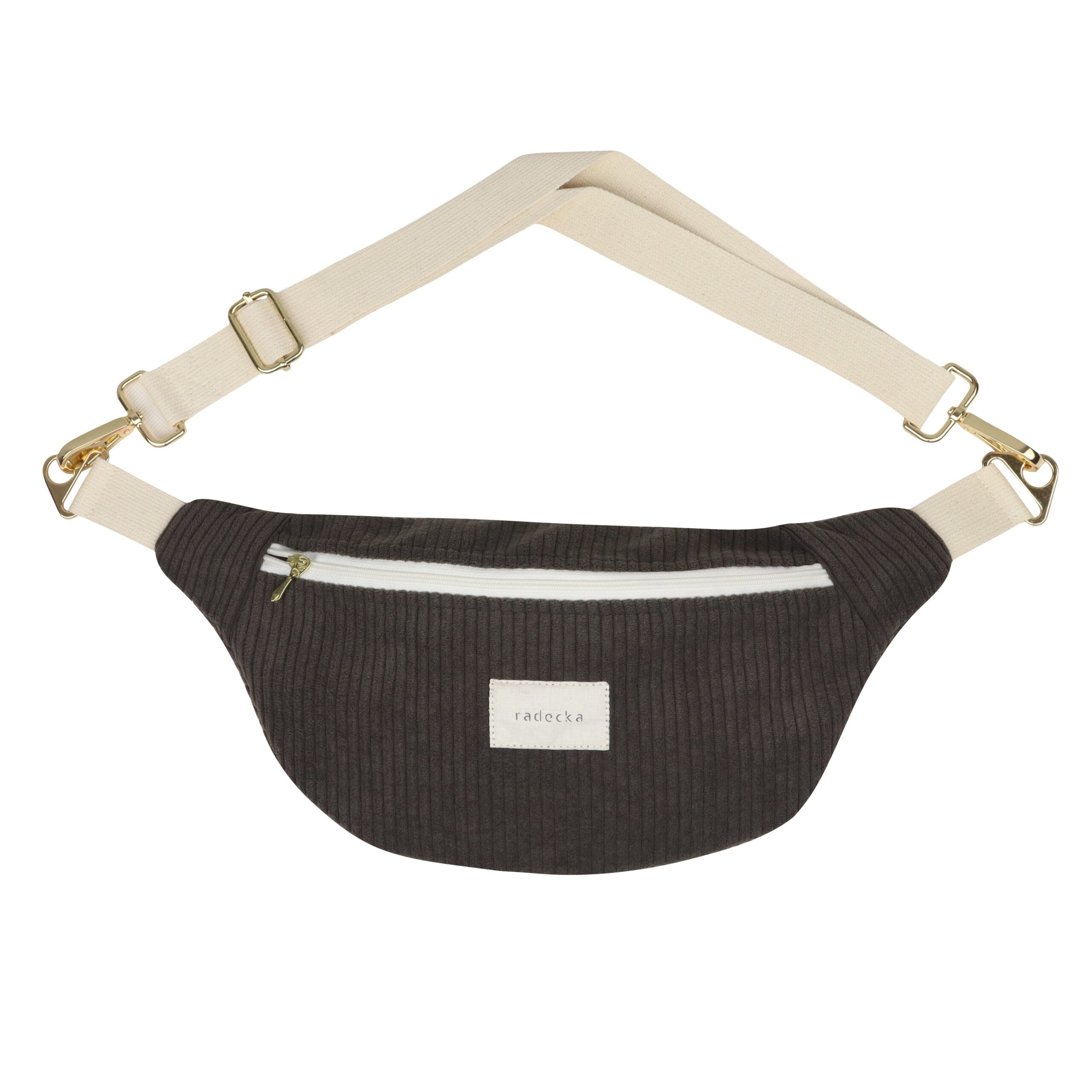 - Pasek: Szeroki pasek bawełniany w kolorze ecru z regulacją – długość paska: 53 – 88cm, obwód całej nerki: 101 – 136 cm